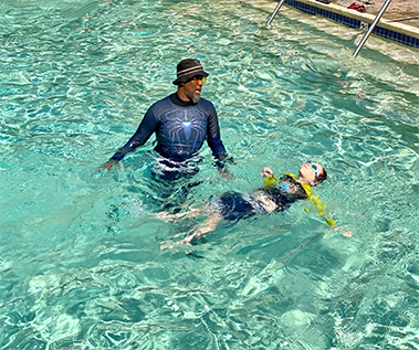 We provide calm and caring swim instruction to all types of children, including those who need a greater level of emotional support. We proceed at a gentle pace tailored to each student.